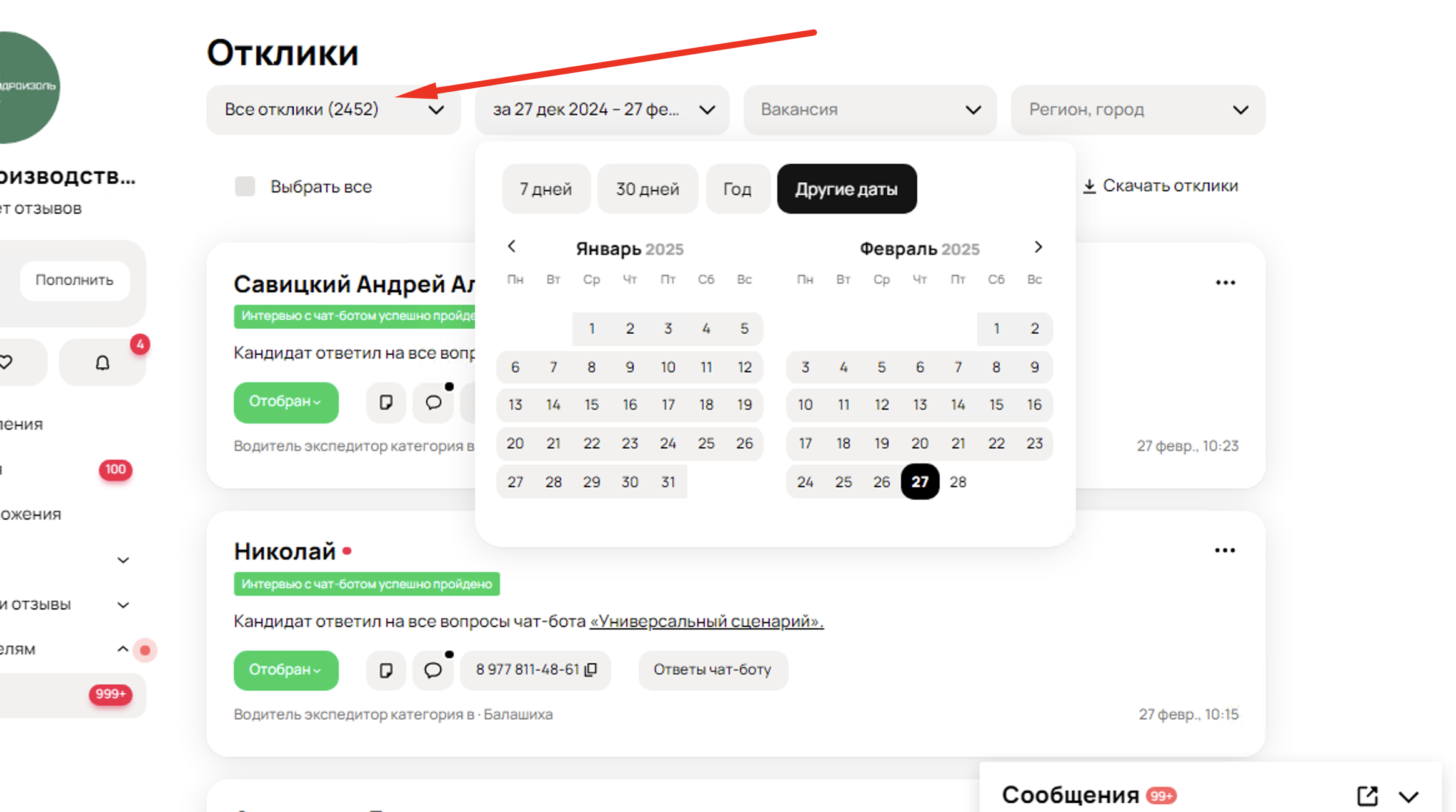 2 города 200+ откликов в день