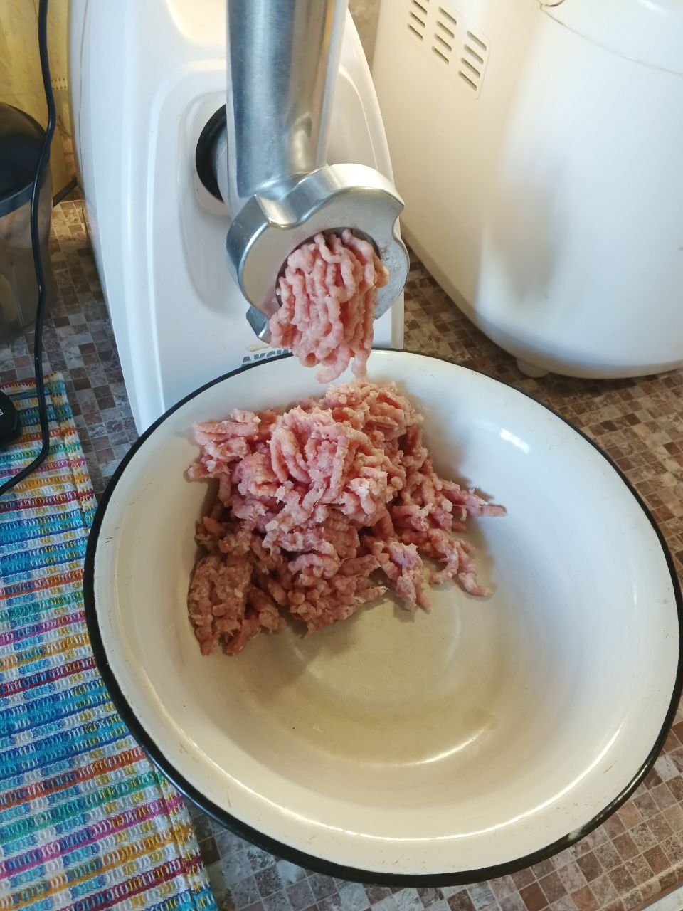 Сначала смолол мякоть баранины и свинины, используя мелкую решетку