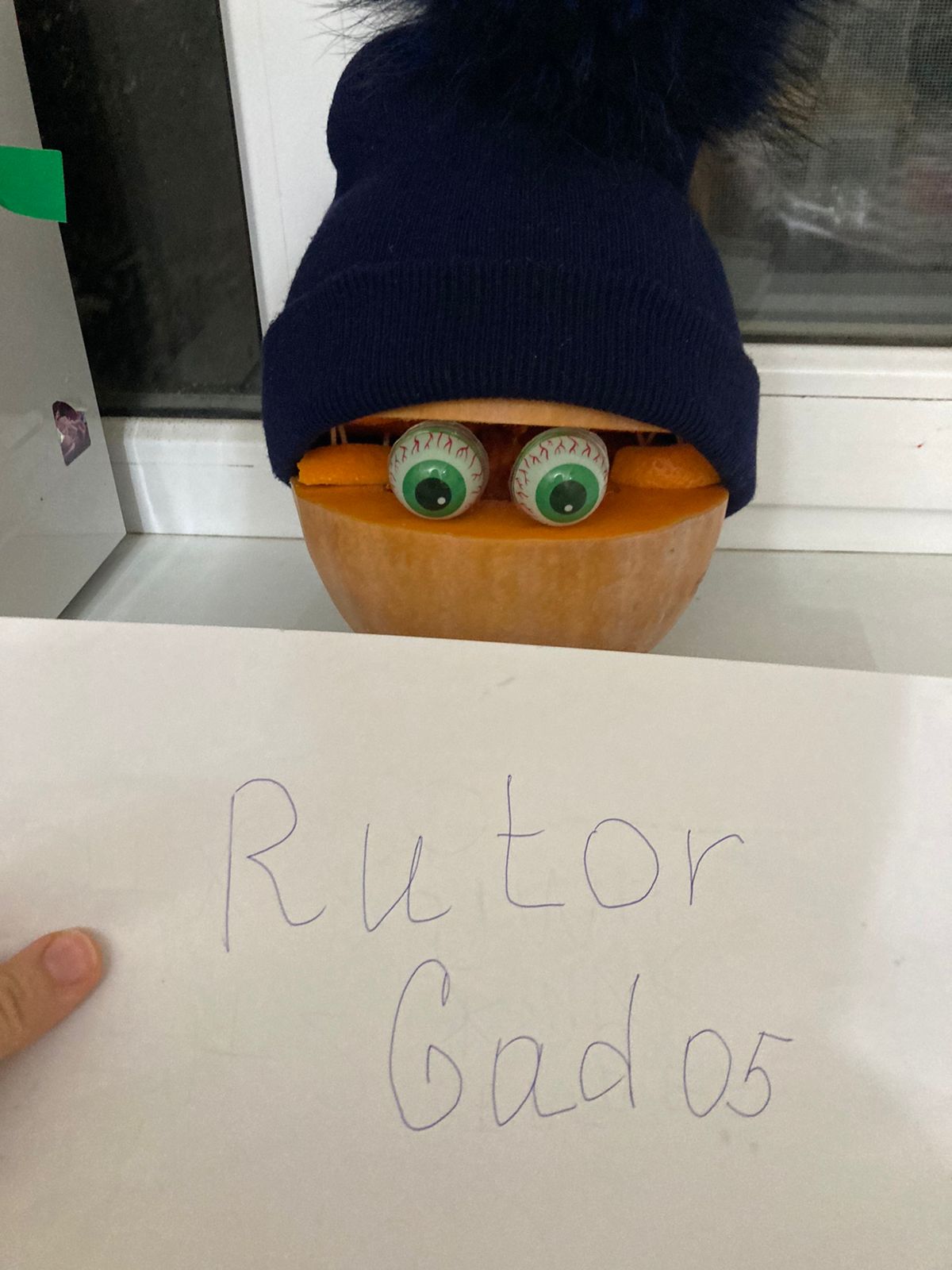 Чтобы тыква не скучала, нам нужно одеть её на голову, и бродить по квартире напевая тили-тили-бом, в моей голове дурдом.