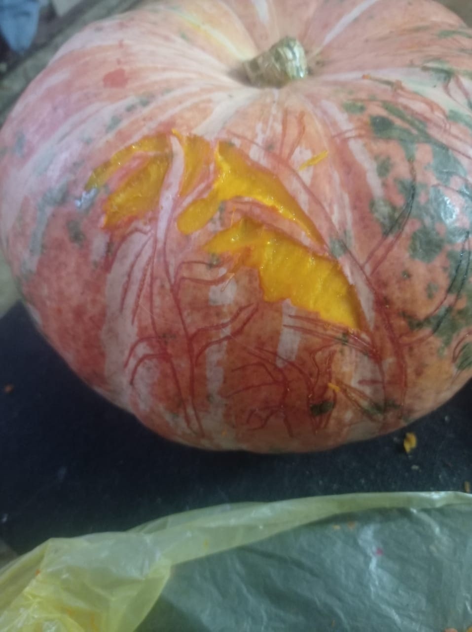 Чтобы тыква не скучала, нам нужно одеть её на голову, и бродить по квартире напевая тили-тили-бом, в моей голове дурдом.