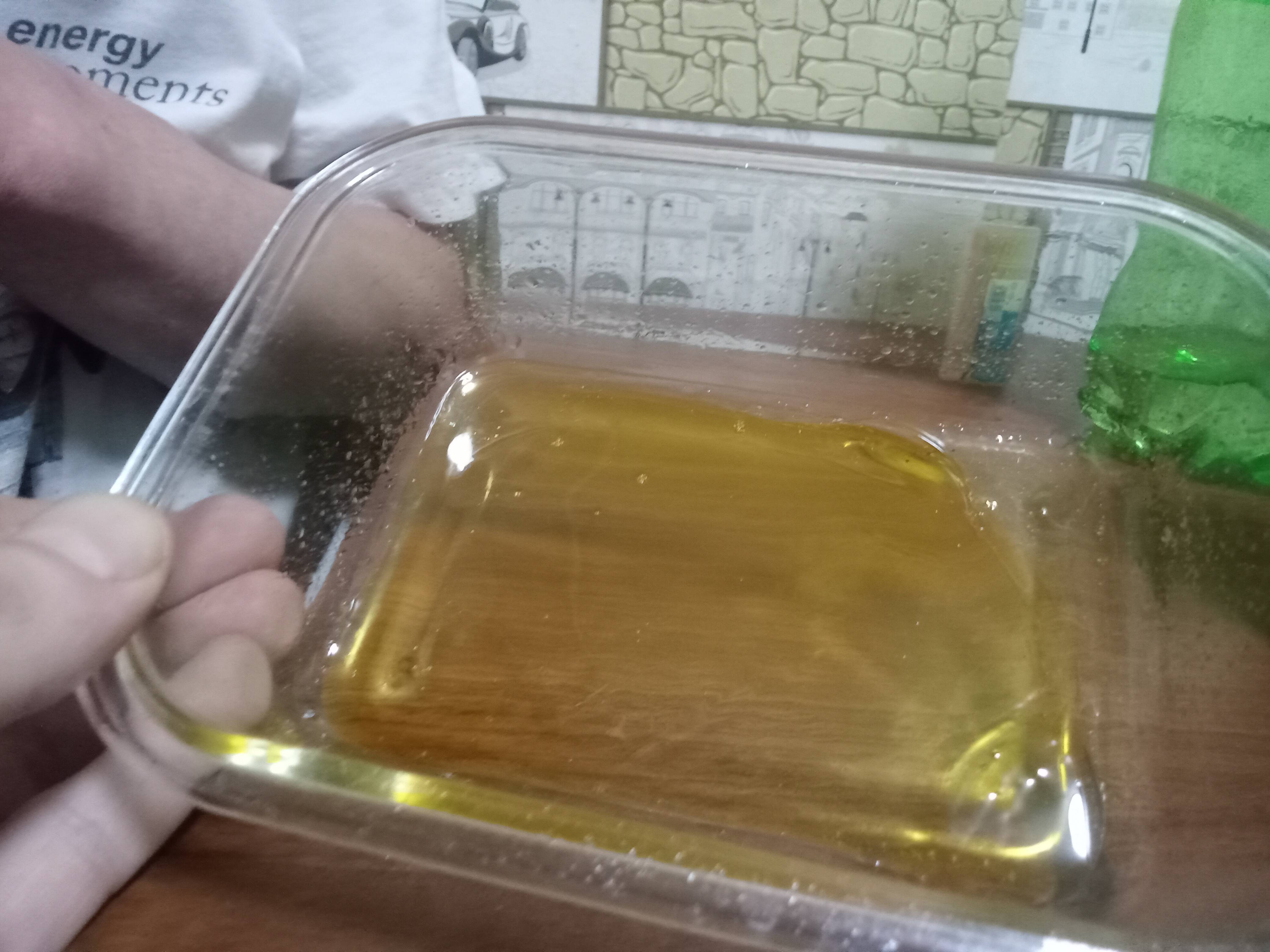 , подождали чутка , верхний слой ( похожий цветом на подсолнечное масло ) в стекло жаропрочную посуду на упаковку и так повторяем ещё 2 раза (вообщем три)