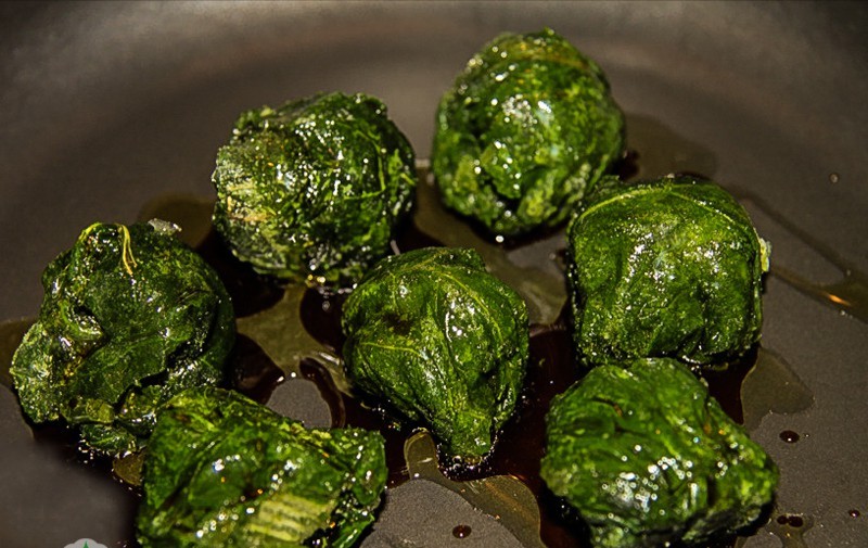 К уже размороженному шпинату на сковородку добавляем измельчённые соцветия марихуаны, добавляем 10 г сливочного масла и перемешиваем