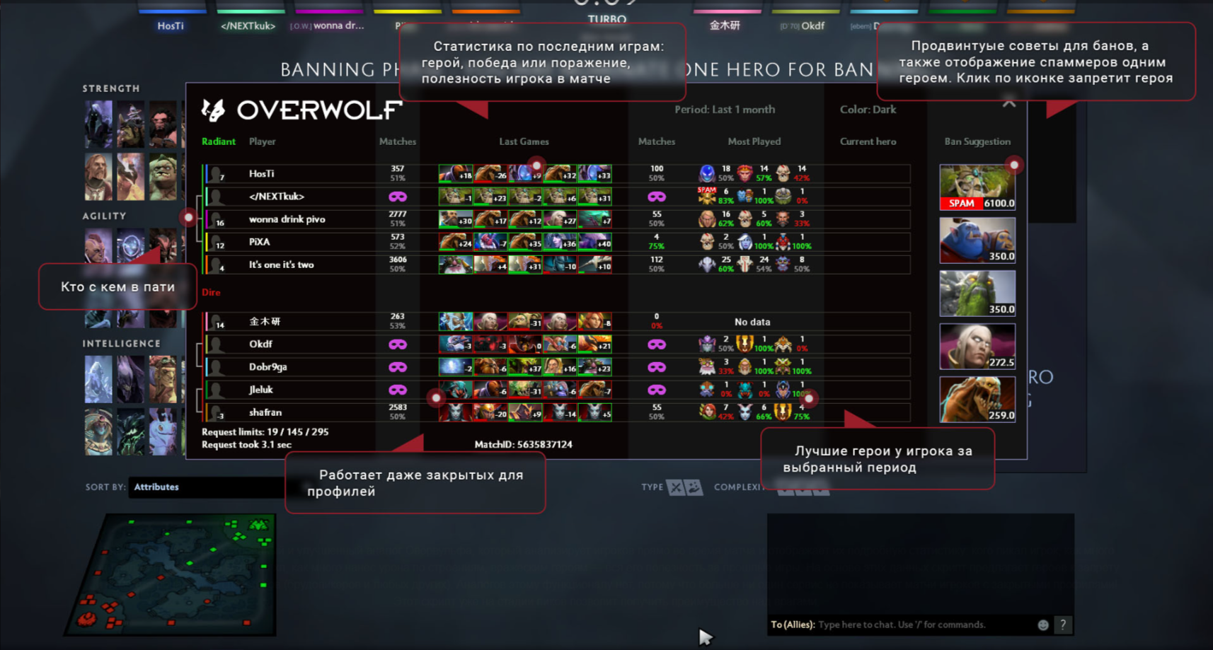• Пометка вверху героя (матча), если игрок спамит этим героем;​