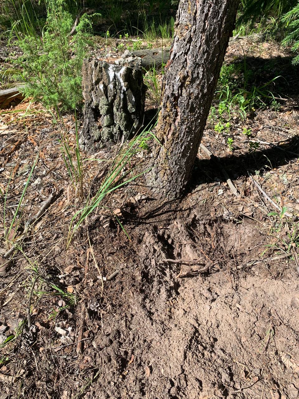 Когда я пришёл на место - такую картину увидел. Уважаемые обратите внимание на цвет земли - серый заветренный высохший, то есть это сделано до того Как приехал я.