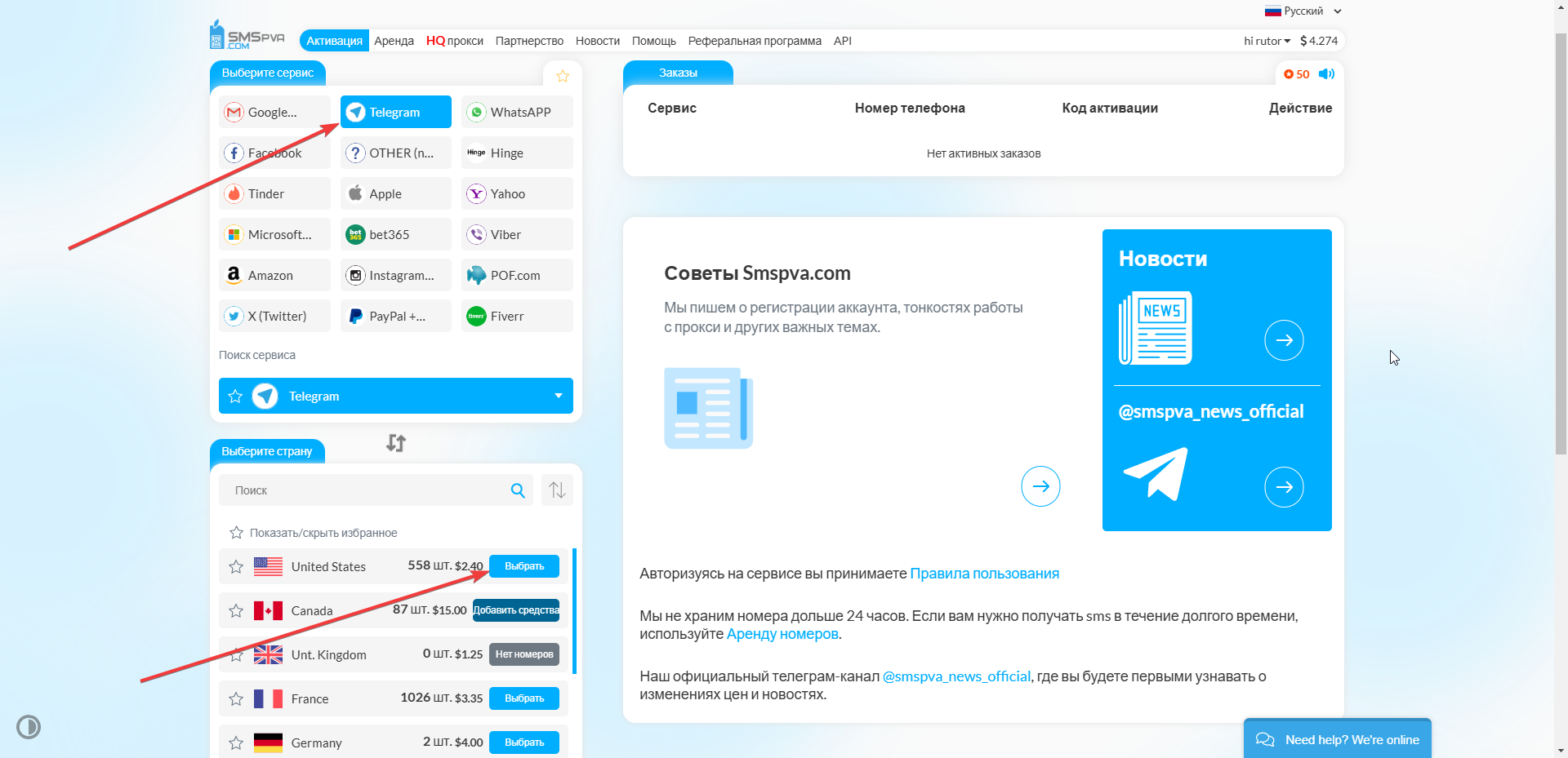 Далее возвращаемся на наш сервис по приему смс: и регистрируемся !