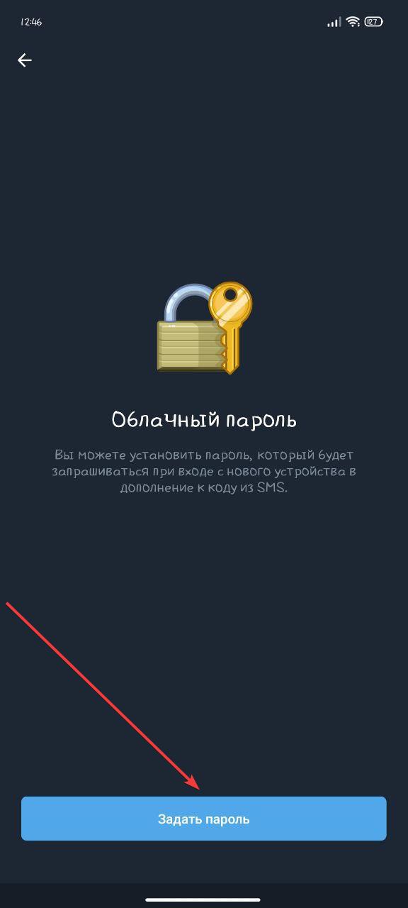 Следующим шагом нужно поставить облачный пароль, это ВАЖНО, так как ставя облачный пароль мы лишаем возможности