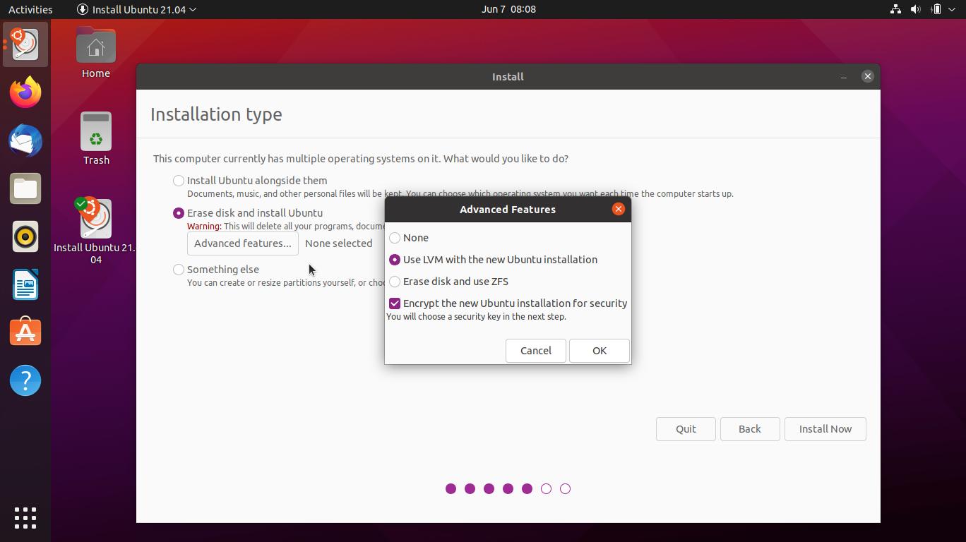 2. Выбор языка - английский язык. Время указываете другого часового пояса. Когда идет установка на чистый форматированный жесткий диск - установите галочку encrypt. Выбираете Erase Disk and Install Ubuntu или Debian и выбираете Галочку. Если вы это не сделает можно сделать потом и будет добавлен пользователь новый.