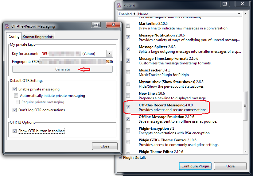 Клиент Pidgin c OTR plugin