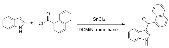 Получаем JWH-011, для чего необходимы следующие вещества: 1. 1-бромэтан, он же бромистый этил (в списках если конц-я более 15%). 2. Индол 3. 1-нафталинкарбоновой кислоты хлорангидрид (1-нафтоилхлорид) 4. Магния сульфат безводный 5. Диэтиловый эфир 6. Хлорид аммония Быстро пройдемся по основным...