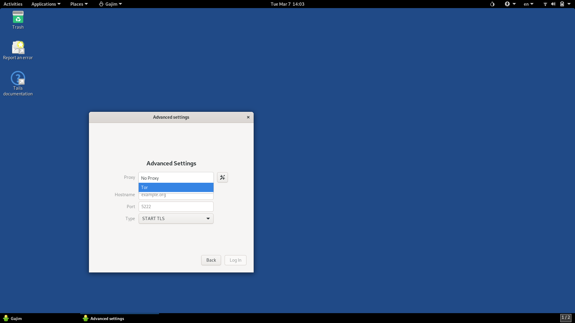 Без дополнительных настроек подключиться к какому-либо серверу не получится, чтоб Gajim работал корректно необходимо указать Tor в настройках прокси.