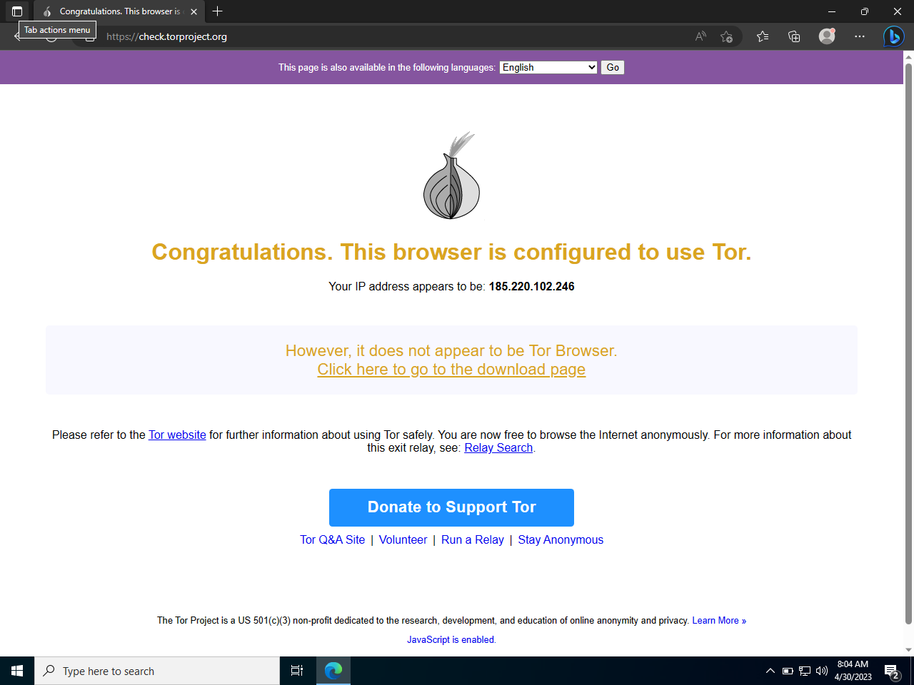 После этого сеть должна заработать, и вы можете убедиться в том, что трафик идет через Tor