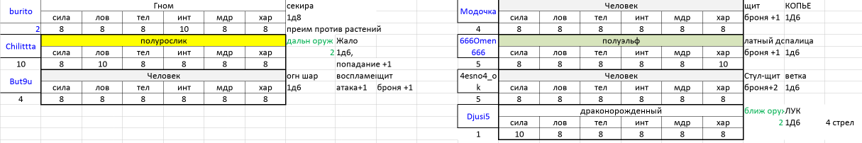 Атака дальнего боя у Эльфов и Полуроскиков +2(потому что ловкость+2) если в руках лук, арбалет или все другое, что дает дальний бой, то 1д4+2